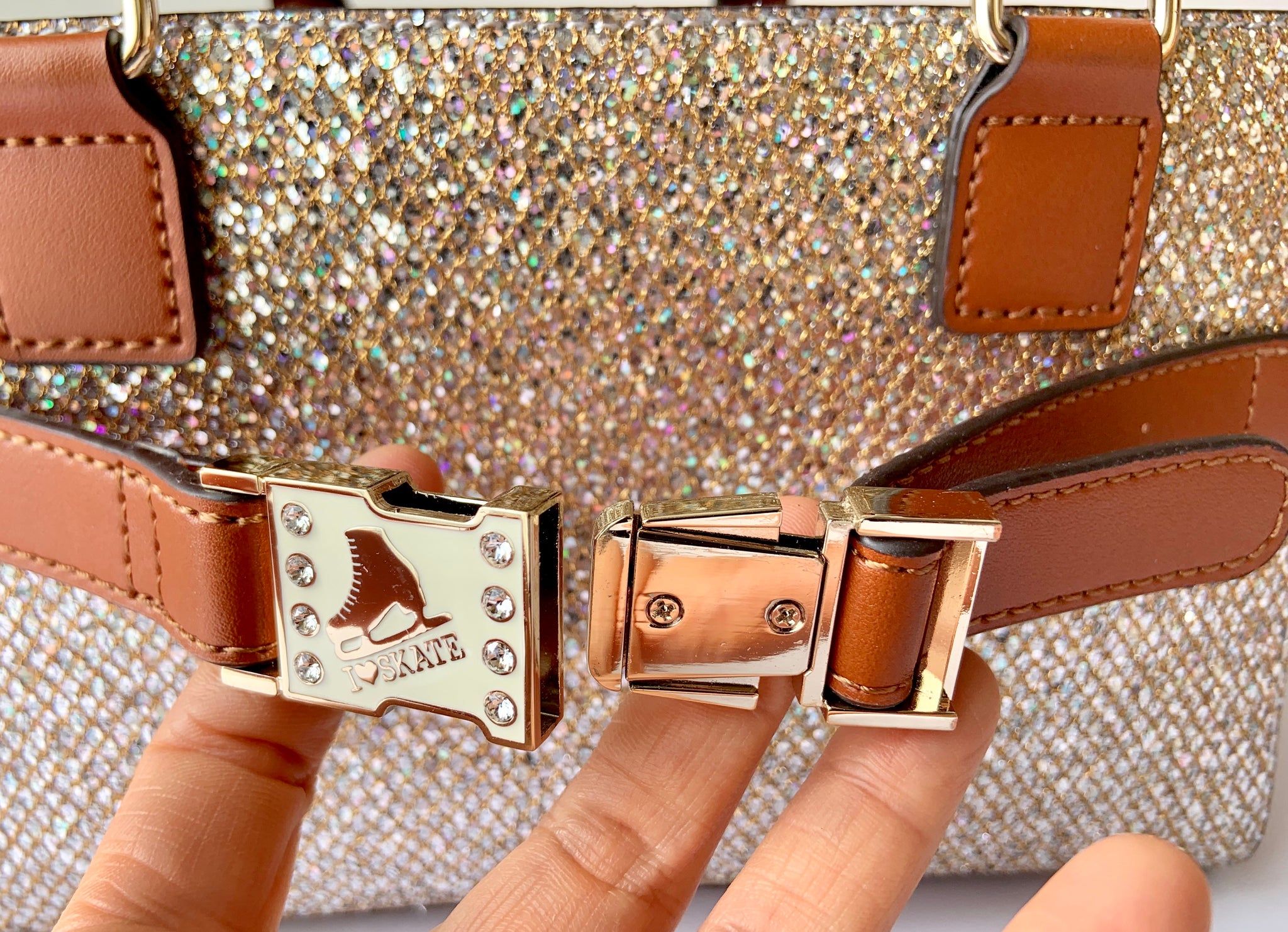 The Cube Tote Bag BLING is designed for skaters to make items you need on the go accessible and keeps everything well organised all in one place. The cube bag is equipped with 3 main open spaces are in the bag. They are separated from a deivider which is removable from velcro. There are 2 small pockets on each side of the bag to keep your music CD and other personal items organised. This bag is the perfect size to keep on the barrier. There is a strap on the back of the bag which can be secured onto your zuca bag or any other suitcase handle when you travel. There are many different designs, colours and materials you can choose.
